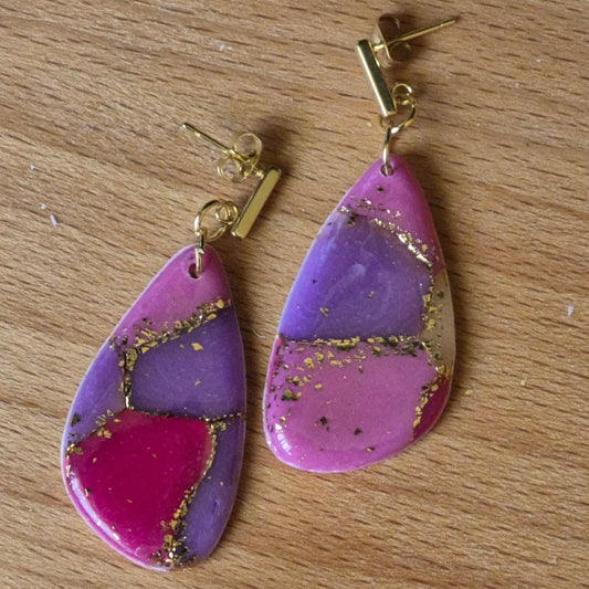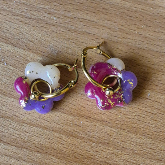 Una colección llena de energía, color y brillo pensada para mujeres que aman destacar con accesorios únicos. Cada pendiente está elaborado a mano en arcilla polimérica, fusionando tonos rosas, lilas y toques dorados que evocan el cielo de una aurora boreal.