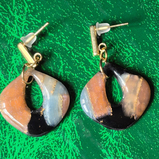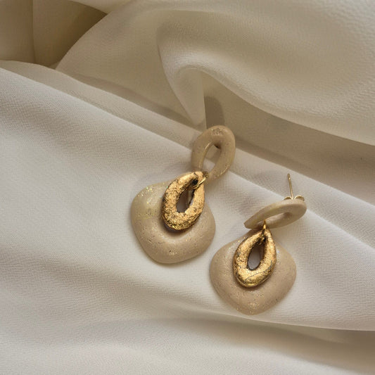 Pendientes abstractos en arcilla polimérica con detalles dorados