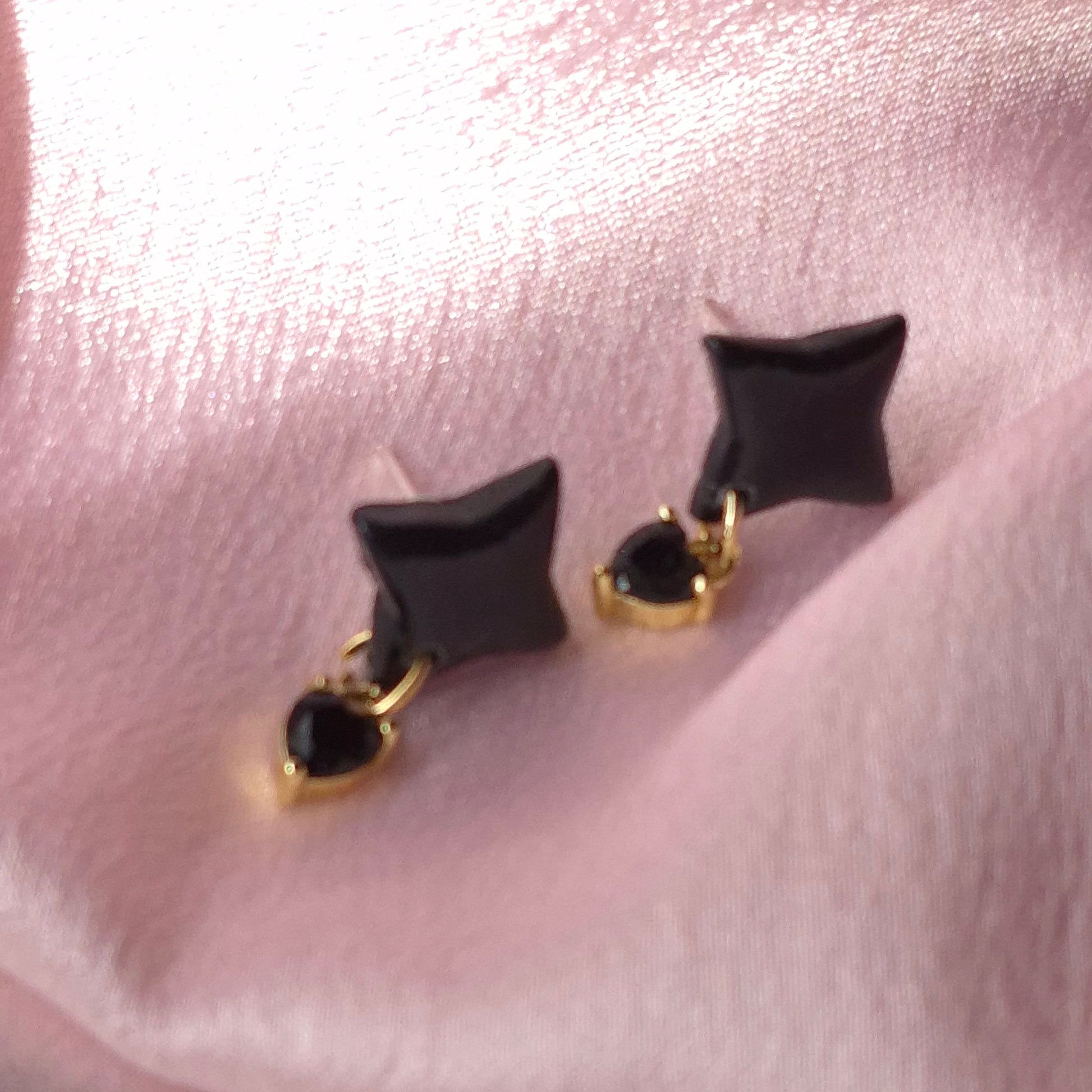 Elegantes y sofisticados, los pendientes "Estrella Negra" están hechos a mano con arcilla polimérica en un diseño de estrella de color negro intenso. Cuentan con un delicado detalle de piedra negra engarzada en metal dorado, que aporta un toque de lujo y distinción. Ligeros y versátiles, son el complemento perfecto para un look moderno y elegante.