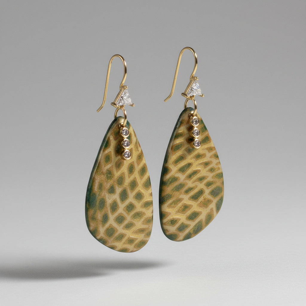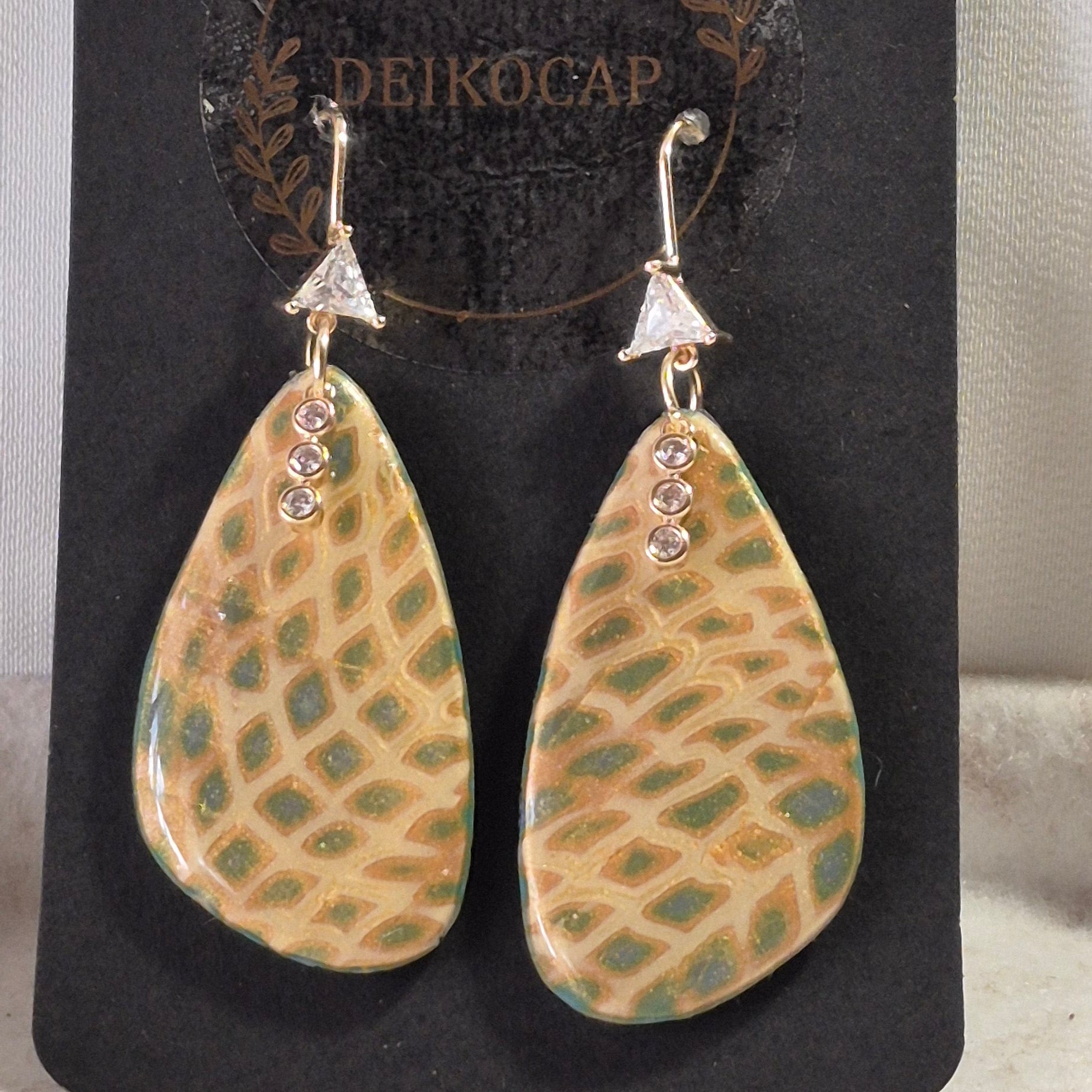 Elegancia con un toque exótico: los Golden Scales están hechos a mano en arcilla polimérica , con un delicado relieve dorado que recuerda a escamas luminosas bajo el sol.