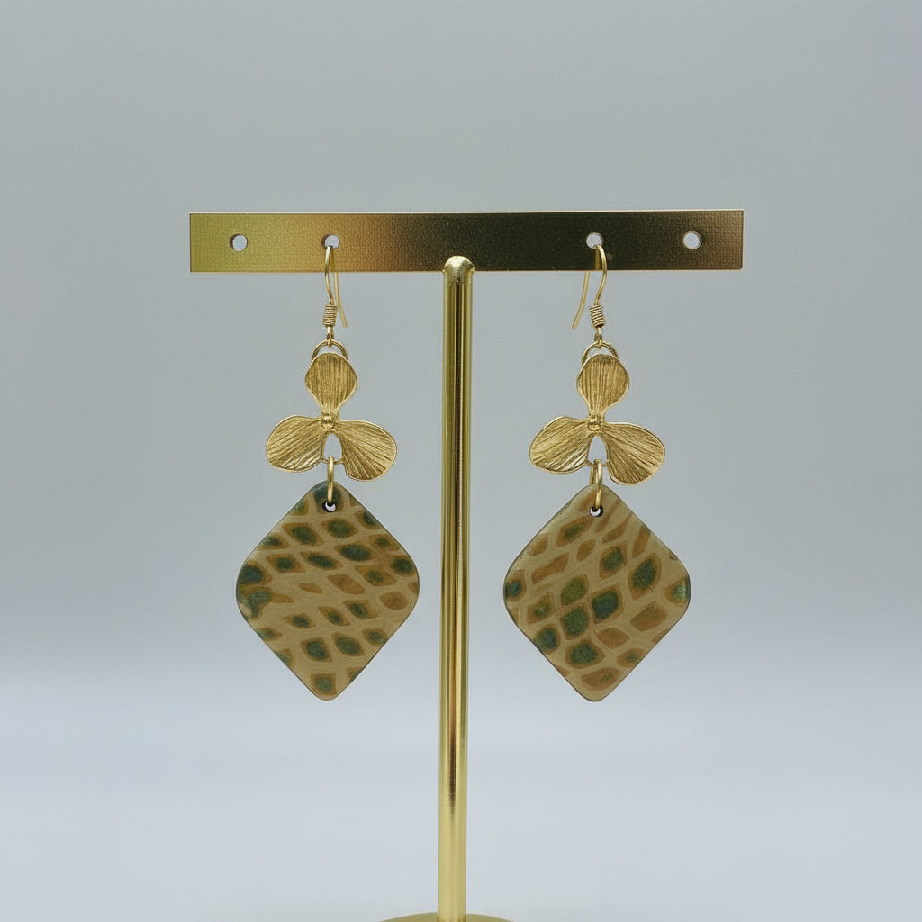 Los pendientes Savannah Gold combinan tonos dorados y verdes con un diseño artesanal único, inspirado en las texturas orgánicas de la naturaleza. Hechos completamente a mano, cada par es irrepetible.